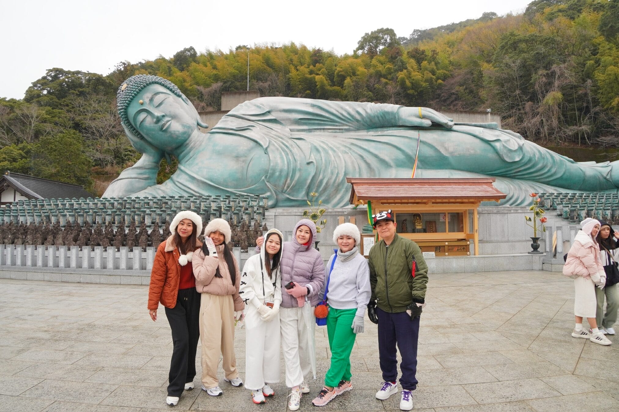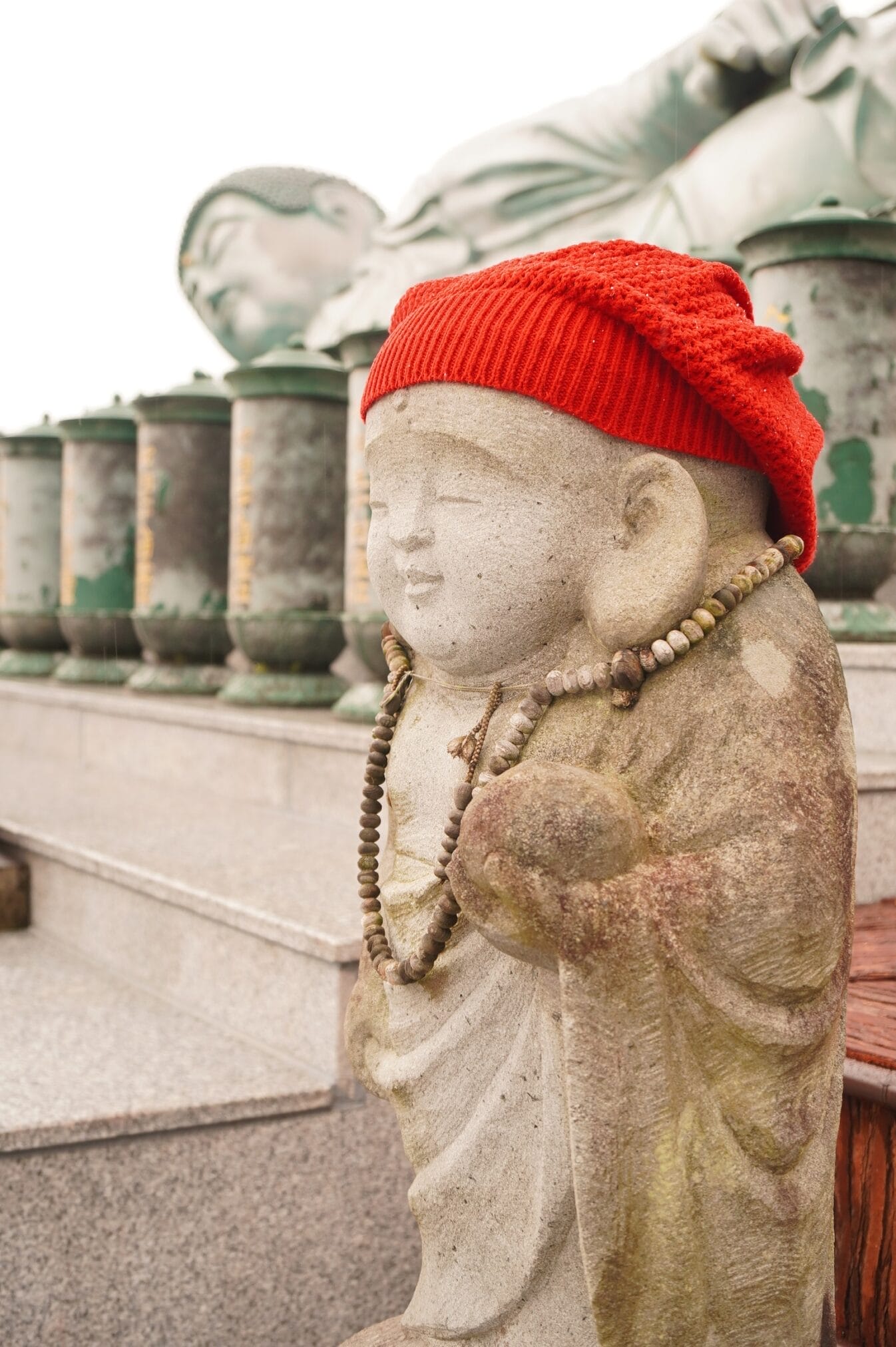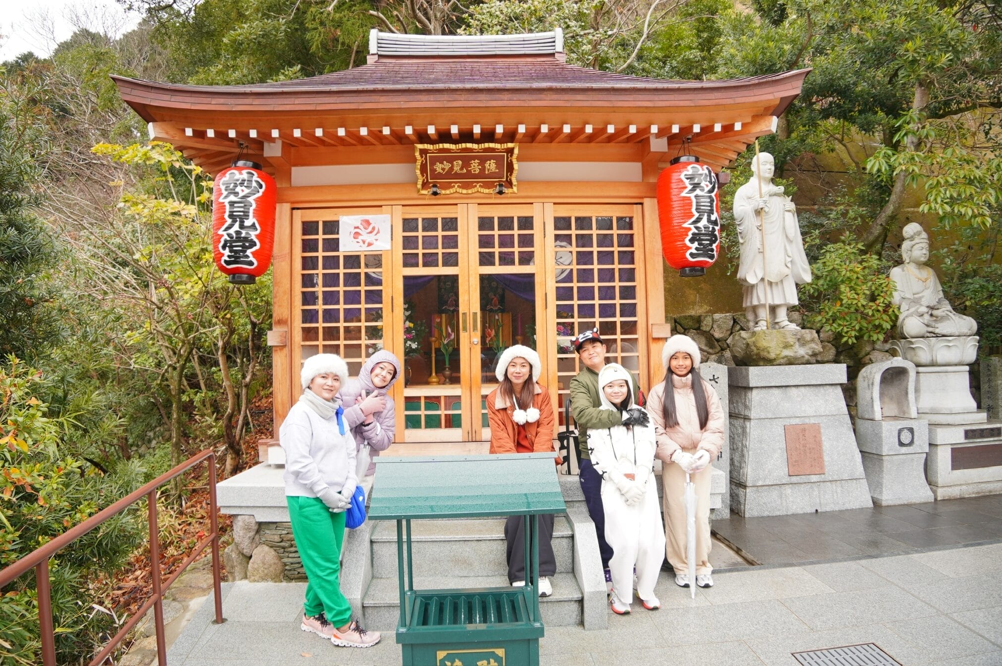 ถึงวัดฝนลงปรอยๆไม่เป็นหิมะแล้ว ที่จอดรถมีสองแบบคือเสียเงินจะได้จอดใกล้ๆ ส่วนฟรีเดินไกล เราเลือกจอดเสียเงินอยู่ติดกับทางเดินเข้าเลย ระหว่างทางลมแรงเเละหนาวมาก รีวิวท่านอื่นว่าให้มาขอหวยโชคลาภ…….ใช่แล้วเราถูกหวยเย็นนั้นเลย ได้ทุนไปเที่ยวต่อ