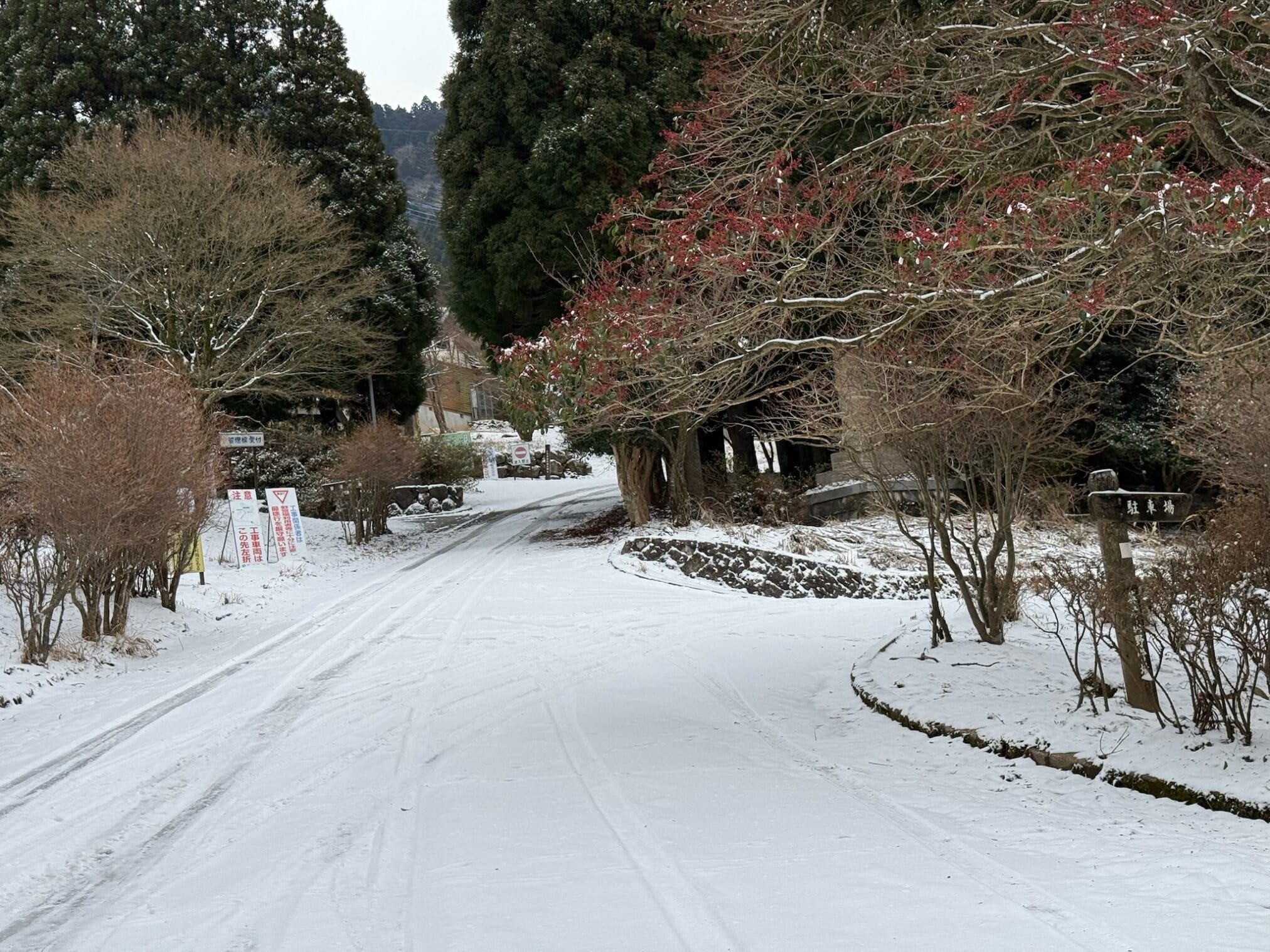 เส้นทางระหว่างมาจะปกคลุมไปด้วยหิมะแต่ไม่หนามาก รถที่ไม่มี Snow wheel สามารถมาได้เเต่ต้องระวัดระวังอย่างมากเพราะจะลื่น