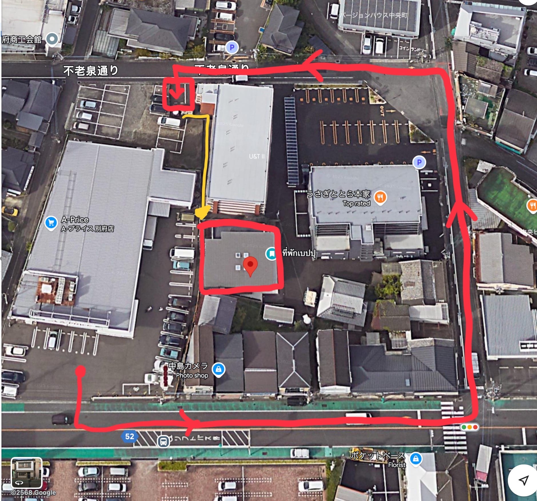 ข้อสังเกตุ : หายากไปนิด ถ้าตามแผนที่แนะนำไปจอดรถที่ super market A Price ก่อน แล้วค่อยโทรหาพนักงานเพื่อ Checkin (พูดอังกฤษได้ เค้าจะถามว่าจองไว้ที่ไหน ให้บอกไปว่า ติดกับ a price แปปเดียวเค้าจะเดินมาจากตึกฝั่งตรงข้าม) แล้วเราย้ายรถวนมาซอยด้านหลัง เพื่อมาจอดในที่จอด (ถึงแนะนำว่าให้จอดที่ A Price แล้วเดินสำรวจที่จอดรถก่อน)